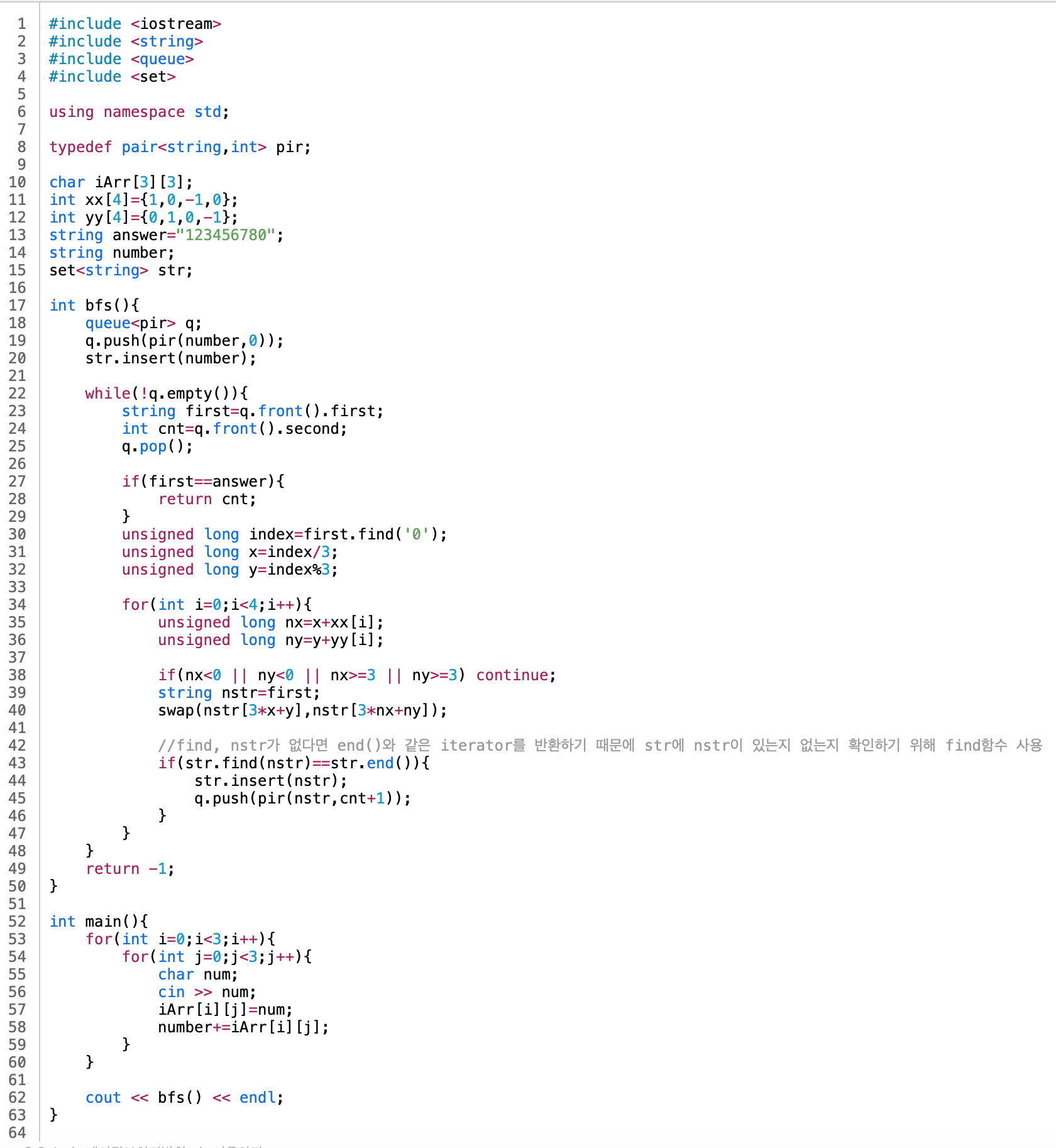 처음에는 배열로 bfs돌리면서 그때마다 string으로 합쳐서 비교를 하려고 했다. 근데 생각해보니 굳이 배열로 유지해줄 필요가 없이 처음부터 문자열 상태로 쭉 계산해주면 될 것 같아서 string으로 하기로 했다.